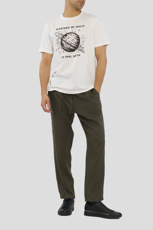 Детали: Мужские брюки цвета хаки из льна от Sand (Санд). Классическая длина, эластичная резинка на поясе с кулиской, средняя посадка, прорезные карманы