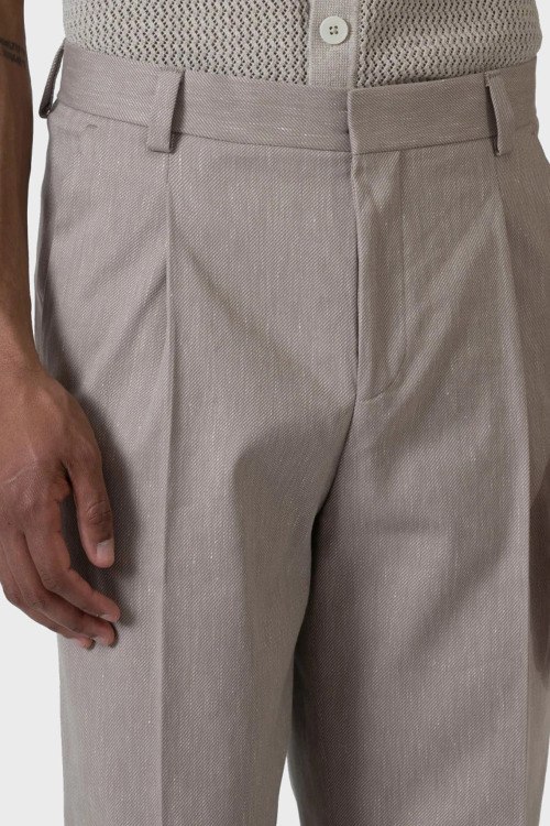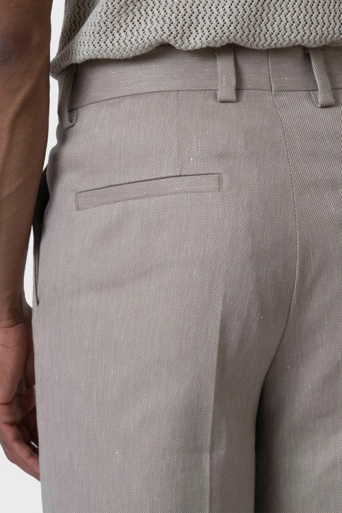 Детали: Мужские бежевые брюки из хлопка и льна от Hugo by Hugo Boss (Хуго бай Хуго Босс). Дизайн со стрелками, боковые и задние карманы, пояс с петлями для ремня, прямой крой, полная длина