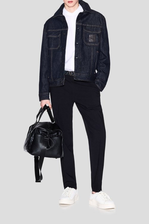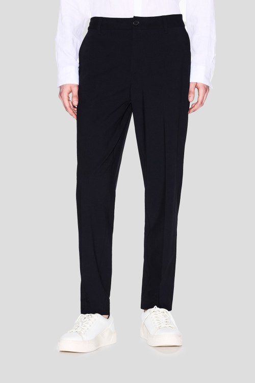 Детали: Мужские черные классические брюки от Armani Exchange (Армани Эксчендж). Дизайн со стрелками, боковые и задние карманы, пояс с петлями для ремня, нашивка с логотипом сзади на поясе, полная длина