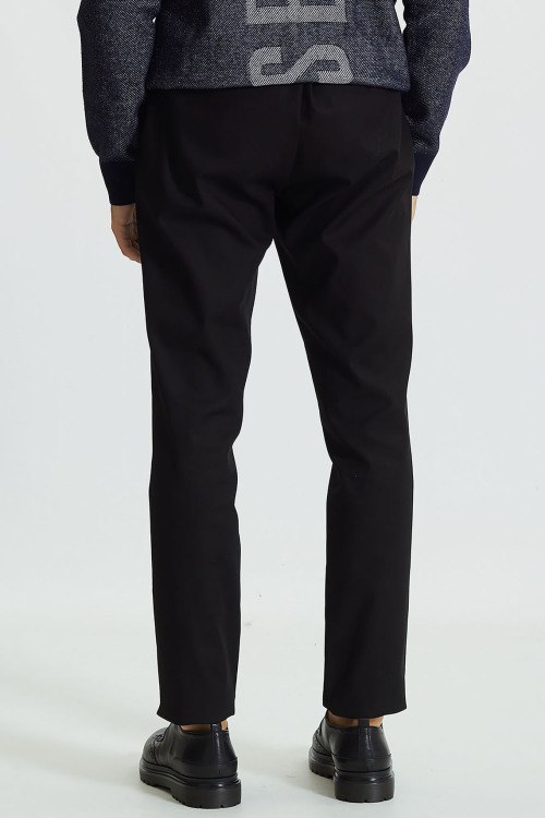 Детали: Мужские черные хлопковые брюки от Bikkembergs (Биккембергс). Дизайн со стрелками, боковые карманы, пояс с петлями для ремня, застежка на молнию и пуговицу, укороченная длина