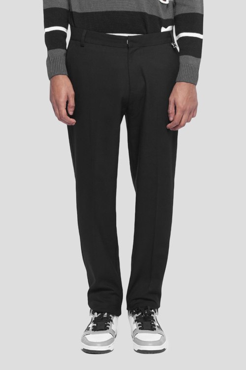 Детали: Мужские черные брюки с примесью шерсти Assari от John Richmond (Джон Ричмонд). Дизайн со стрелками, пояс с петлями для ремня, боковые и задние карманы, полная длина