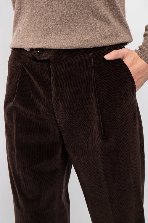 Детали: Мужские темно-коричневые вельветовые брюки от Corneliani (Корнелиани). Дизайн со стрелками, боковые и задние карманы, прямой крой, полная длина. Размер вещи на фото: 50