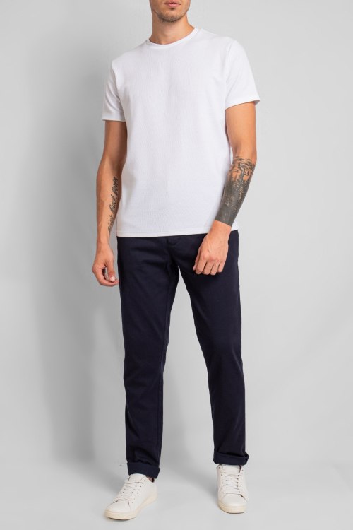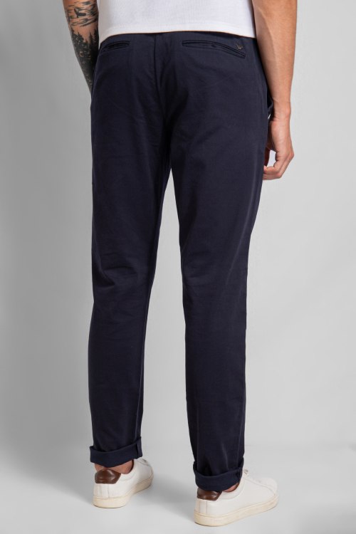 Мужские темно-синие брюки из хлопкового микса от Armani Jeans (Армани Джинс). Классическая модель, четыре кармана, пояс с петлями для ремня, патч-лого.