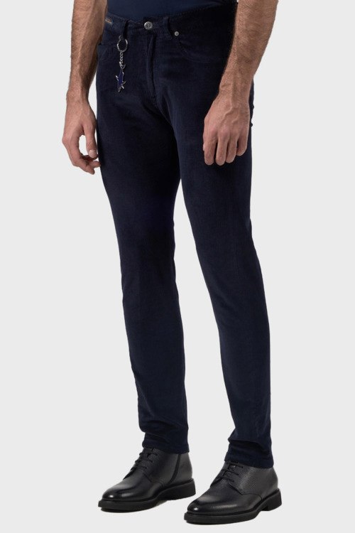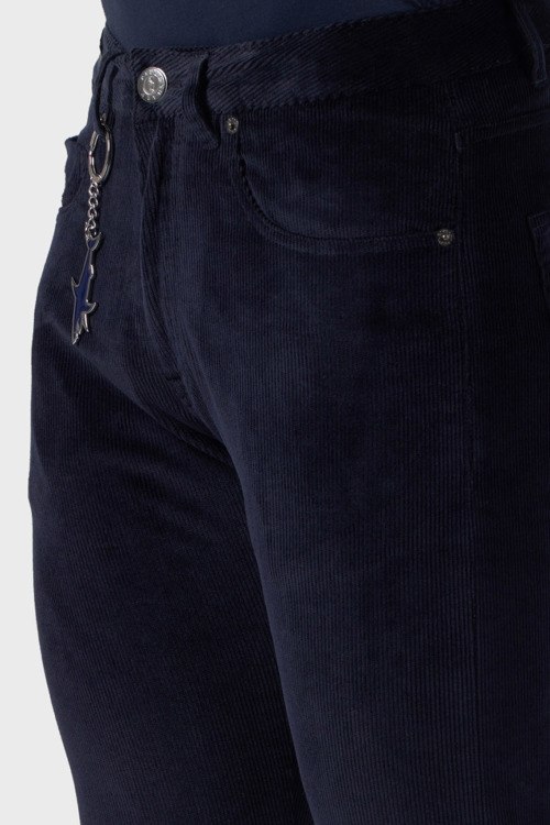 Детали: Мужские темно-синие вельветовые брюки от Paul & Shark (Пол энд Шарк). Подвеска с логотипом, передние и задние карманы, пояс с петлями для ремня, узкий крой, полная длина
