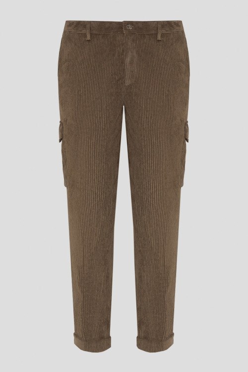 Детали: Мужские коричневые брюки-карго из микса полиэстера от Barba Napoli (Барба Наполи). Зауженный фасон, застежка на пуговицу и молнию, петли для ремня на поясе, два прорезных кармана, два накладных кармана с клапанами, два задних кармана с клапанами. Замеры: обхват пояса: для размера 50 - 92 см, обхват бедер: для размера 50 - 108 см, длина штанины: для размера 50 - 102 см, длина по шаговому шву: для размера 50 - 78 см