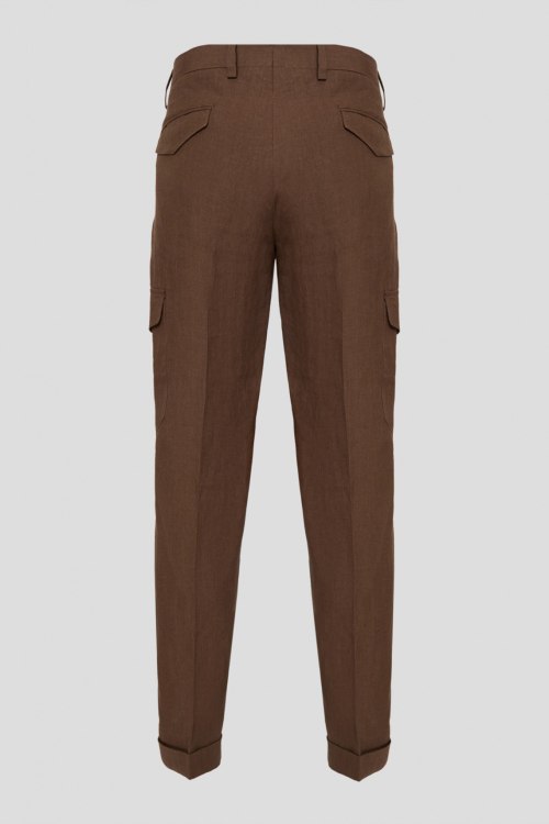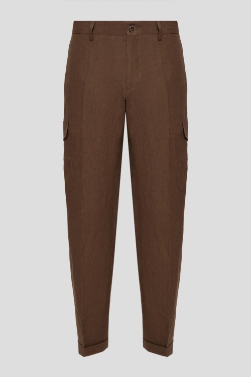 Детали: Мужские коричневые льняные брюки-карго от Barba Napoli (Барба Наполи). Классическая длина, зауженная модель, застежка на молнию и пуговицу, шесть карманов, петли в поясе для ремня. Замеры: обхват пояса: для размера 50 - 90 см, обхват бедер: для размера 50 - 108 см, длина штанины: для размера 50 - 102 см, длина по шаговому шву: для размера 50 - 79 см