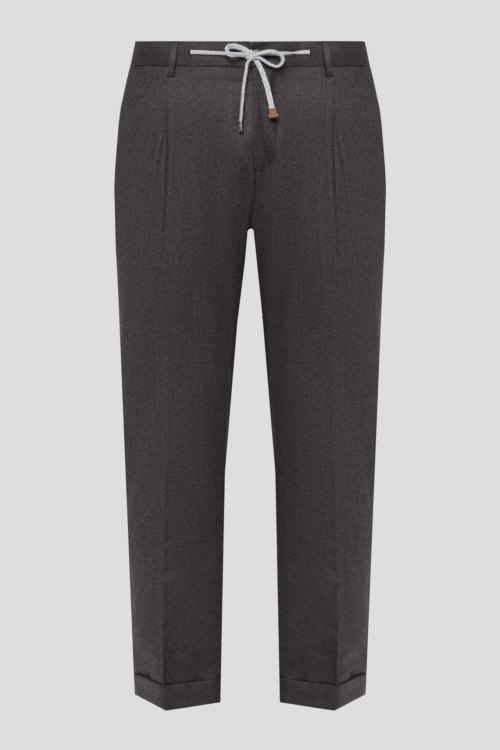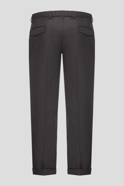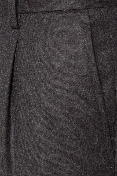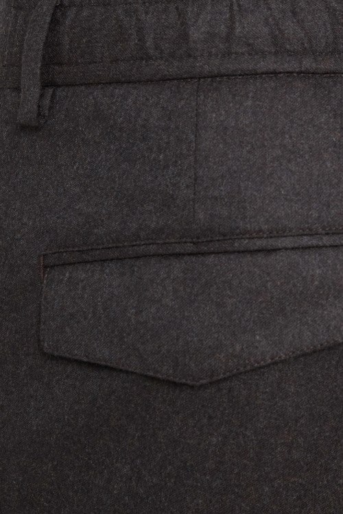 Детали: Мужские темно-коричневые брюки из натуральной шерсти от Barba Napoli (Барба Наполи). Зауженный фасон, застежка на пуговицу и молнию, эластичный пояс с кулиской, петли для ремня, два боковых прорезных кармана, два кармана с клапанами сзади. Замеры: обхват пояса: для размера 50 - 80 см, обхват бедер: для размера 50 - 108 см, длина штанины: для размера 50 - 100 см, длина по шаговому шву: для размера 50 - 77 см