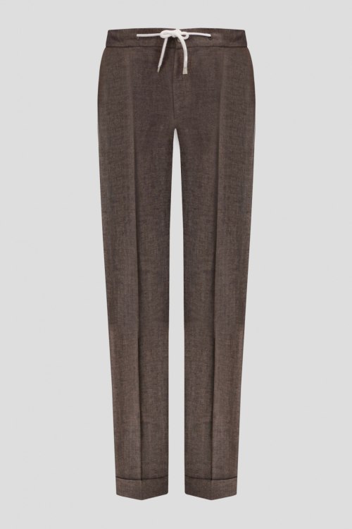 Детали: Мужские коричневые льняные брюки от Barba Napoli (Барба Наполи). Классическая длина, застежка на молнию и пуговицу, эластичный пояс с кулиской, четыре кармана. Замеры: обхват пояса: для размера 50 - 82 см, обхват бедер: для размера 50 - 108 см, длина штанины: для размера 50 - 102 см, длина по шаговому шву: для размера 50 - 78 см
