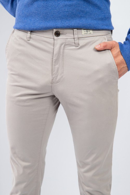 Детали: Мужские хлопковые брюки молочного оттенка от Jack & Jones (Джек энд Джонс). Боковые и задние карманы, пояс с петлями для ремня, зауженный крой, полная длина