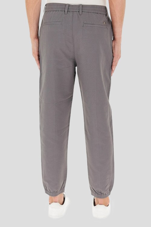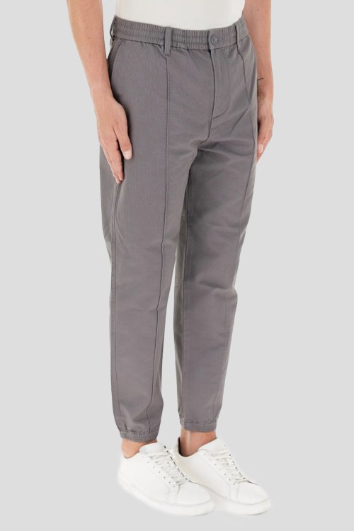 Детали: Мужские серые брюки из хлопка от Armani Exchange (Армани Эксчендж). Эластичная резинка на поясе, застежка на молнию и пуговицу, четыре кармана, петли в поясе для ремня, эластичная резинка на манжетах