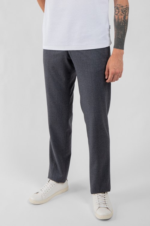 Мужские серые брюки из натуральной шерсти от CSS (CSS). Классическая модель, боковые карманы, пояс с петлями для ремня, прямой фасон.