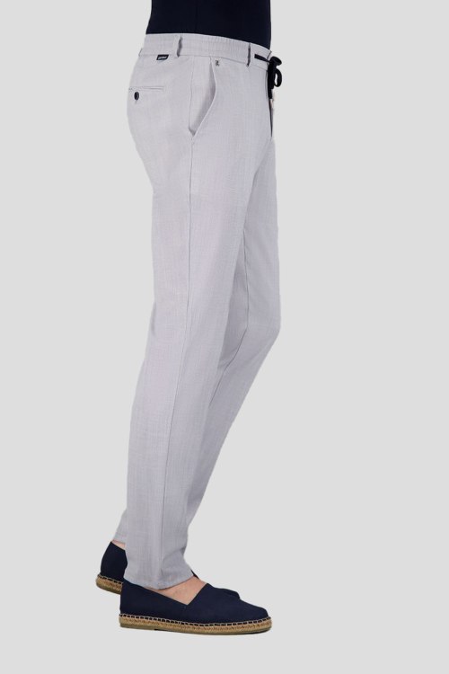 Детали: Мужские светло-серые брюки Sydney-2 из вискозы и полиэстера от Gardeur (Гардюар). Классическая длина, застежка на молнию и пуговицу, кулиска в поясе, петли для ремня, патч-лого, четыре прорезные карманы
