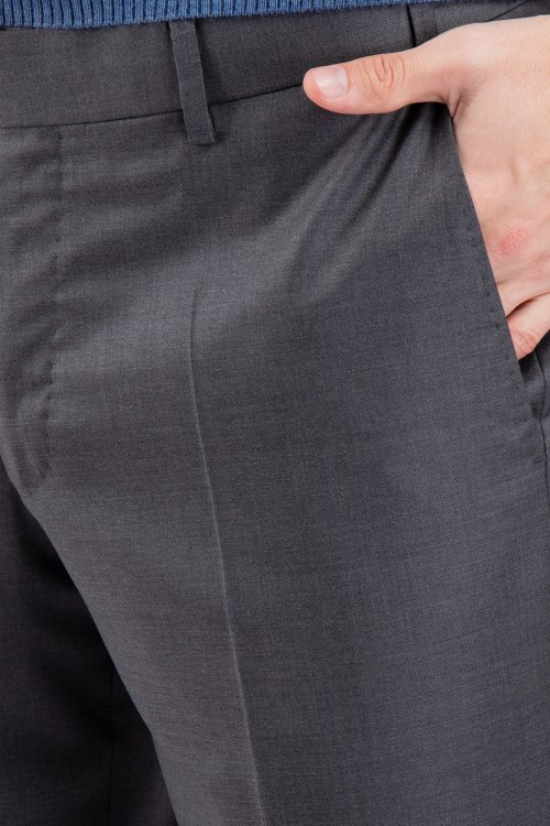 Мужские темно-серые брюки из натуральной шерсти от Hiltl (Хилтл). Боковые и задние карманы, в поясе с петлями для ремня.
