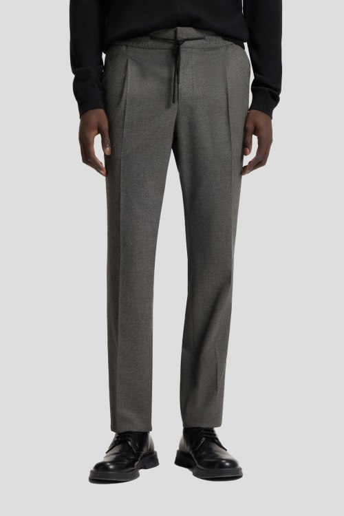 Детали: Мужские серые брюки Getlin из эластичной фланели от Hugo by Hugo Boss (Хуго бай Хуго Босс). Дизайн со стрелками, в поясе на завязках, боковые и задние карманы, прямой крой, полная длина