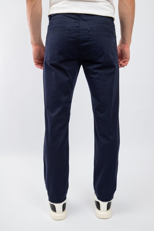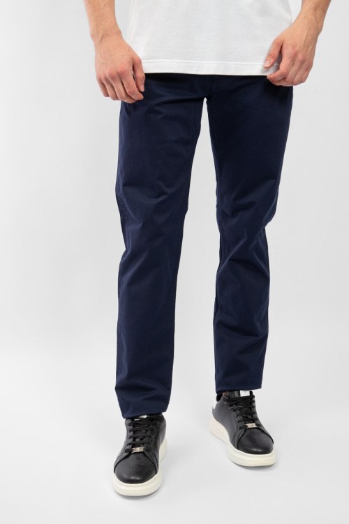 Детали: Мужские темно-синие хлопковые брюки от Gant (Гант). Пяти-карманная модель, пояс с петлями для ремня, прямой крой, полная длина