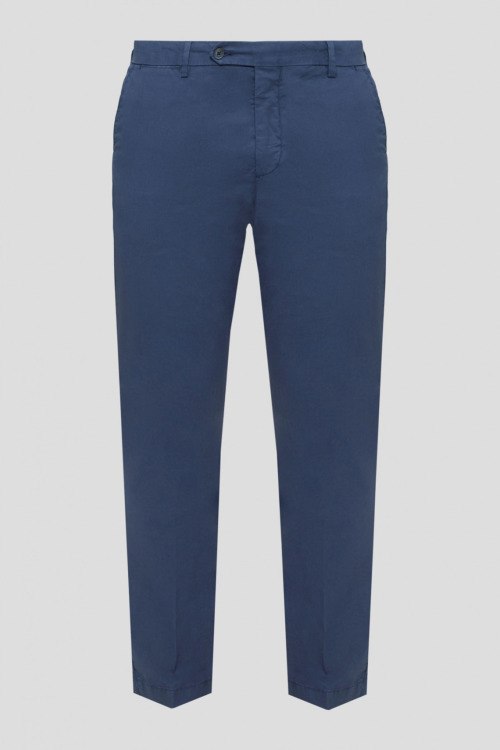 Детали: Мужские синие хлопковые брюки от Hackett (Хаккетт). Боковые и задние карманы, пояс с петлями для ремня, зауженный фасон, полная длина. Обхват пояса: для размера 32 - 84 см, обхват бедер: для размера 32 - 100 см, длина штанины: для размера 32 - 105 см, длина по шаговому шву: для размера 32 - 85 см