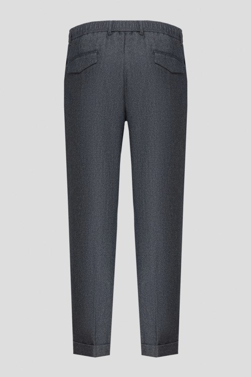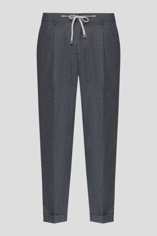 Детали: Мужские темно-серые брюки из натуральной шерсти и кашемира от Barba Napoli (Барба Наполи). Зауженный фасон, застежка на пуговицу и молнию, эластичный пояс с кулиской, петли для ремня, два прорезных боковых кармана, два кармана с клапанами сзади. Замеры: обхват пояса: для размера 50 - 79 см, обхват бедер: для размера 50 - 102 см, длина штанины: для размера 50 - 99 см, длина по шаговому шву: для размера 50 - 76 см
