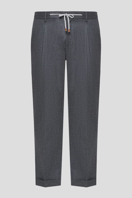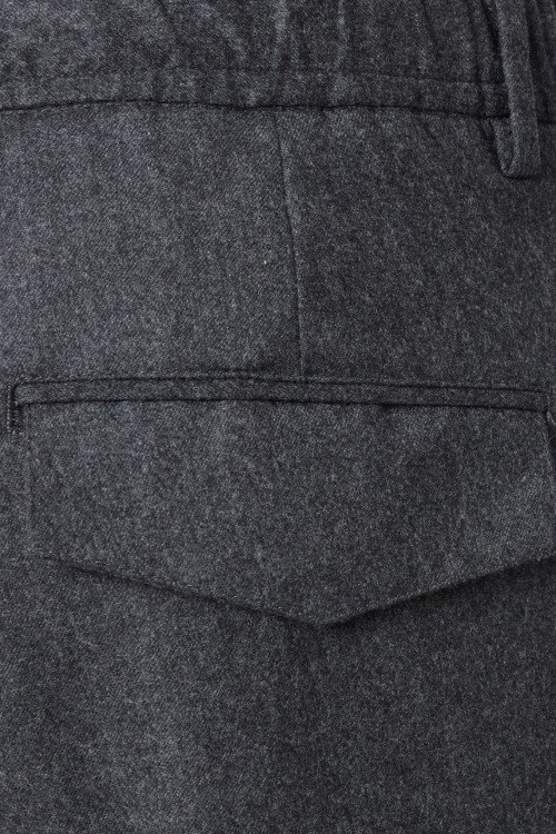 Детали: Мужские темно-серые брюки из натуральной шерсти от Barba Napoli (Барба Наполи). Зауженный фасон, застежка на пуговицу и молнию, эластичный пояс с кулиской, петли для ремня, два боковых прорезных кармана, два кармана с клапанами сзади. Замеры: обхват пояса: для размера 50 - 80 см, обхват бедер: для размера 50 - 108 см, длина штанины: для размера 50 - 100 см, длина по шаговому шву: для размера 50 - 77 см
