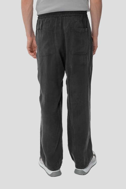 Детали: Мужские темно-серые брюки из лиоцелла и вискозы от Hugo by Hugo Boss (Хуго бай Хуго Босс). Эластичный пояс на завязках, боковые и задние карманы, полная длина