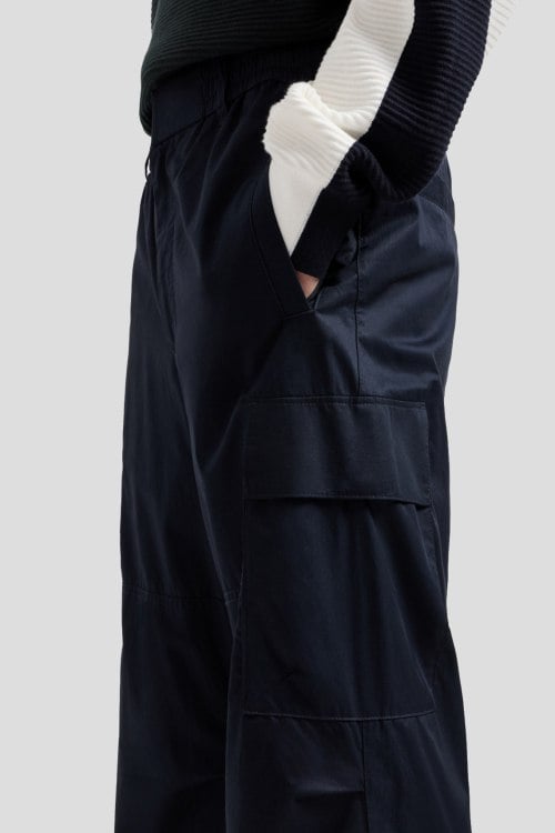 Детали: Мужские темно-синие хлопковые брюки-карго от Armani Exchange (Армани Эксчендж). Боковые и задние карманы, накладные карманы-карго, эластичный пояс с петлями для ремня, полная длина