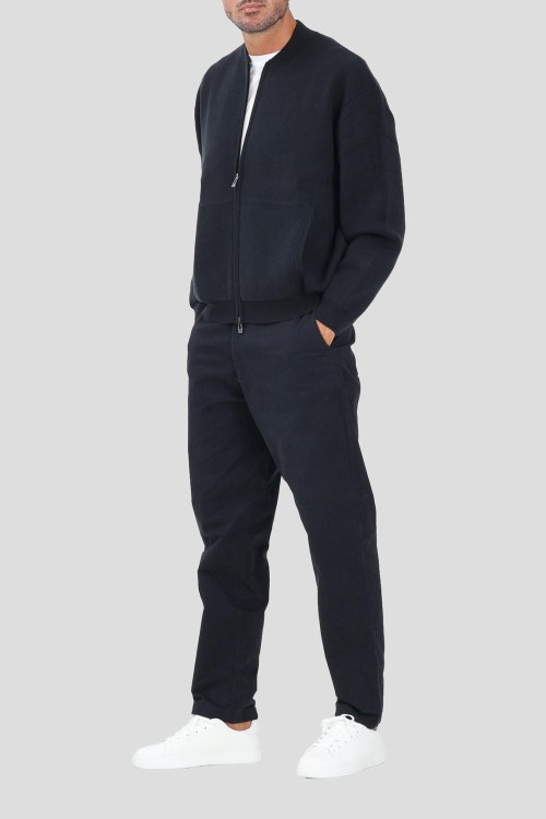 Детали: Мужские темно-синие хлопковые брюки от Armani Exchange (Армани Эксчендж). Боковые и задние карманы, пояс с петлями для ремня, прямой крой, полная длина