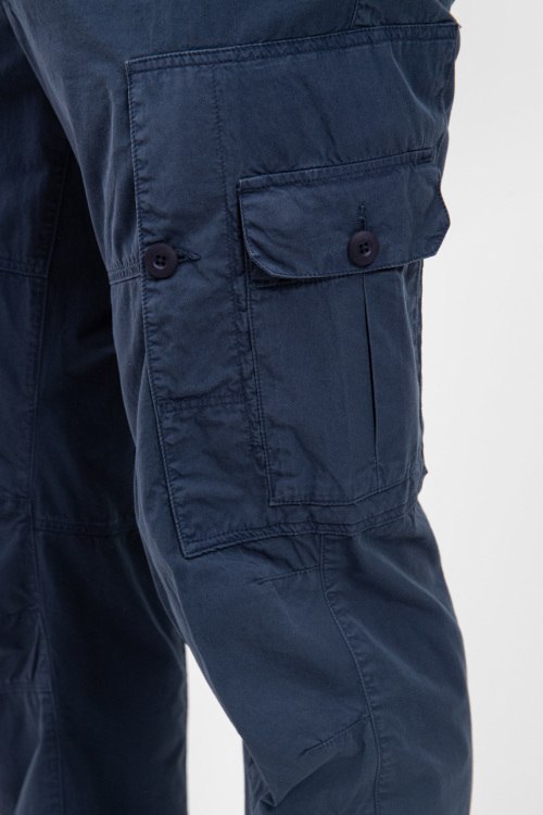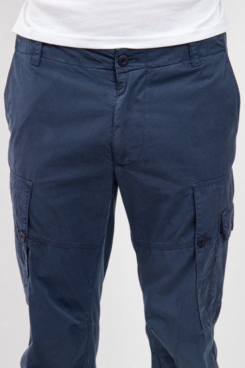Детали: Мужские темно-синие хлопковые брюки-карго от Blauer (Блауэр). Пояс с петлями для ремня, боковые и задние карманы, накладные карманы-карго, полная длина