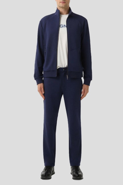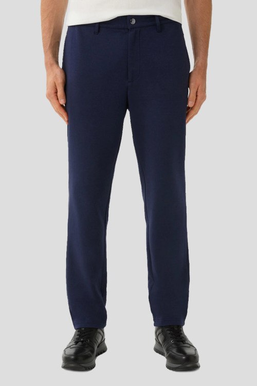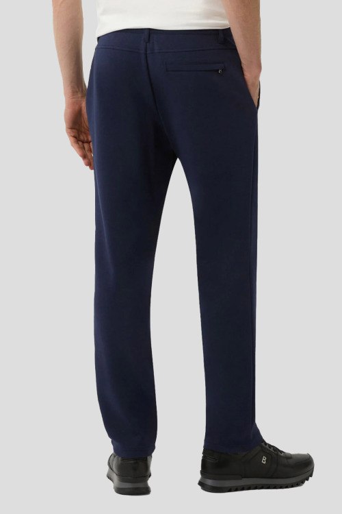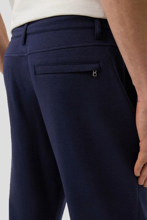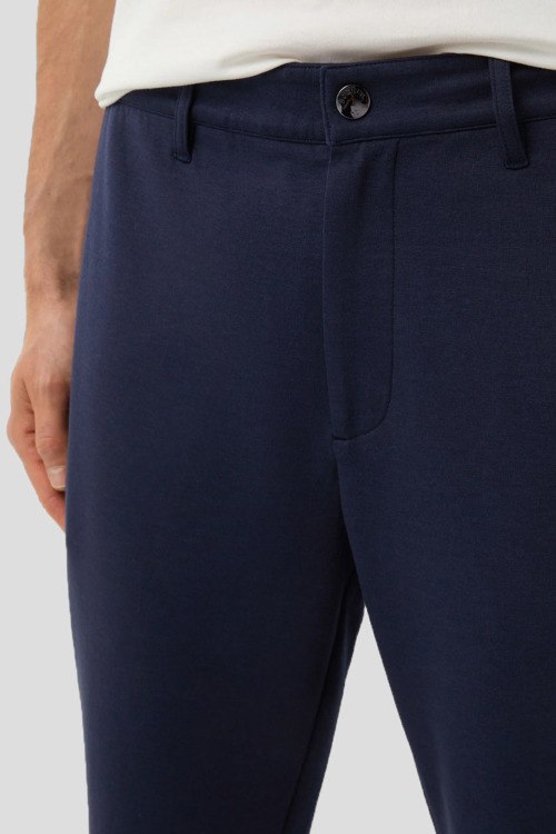 Детали: Мужские темно-синие брюки их хлопка и модала Riley от Bogner (Богнер). Боковые и задние карманы, пояс с петлями для ремня, прямой крой, полная длина
