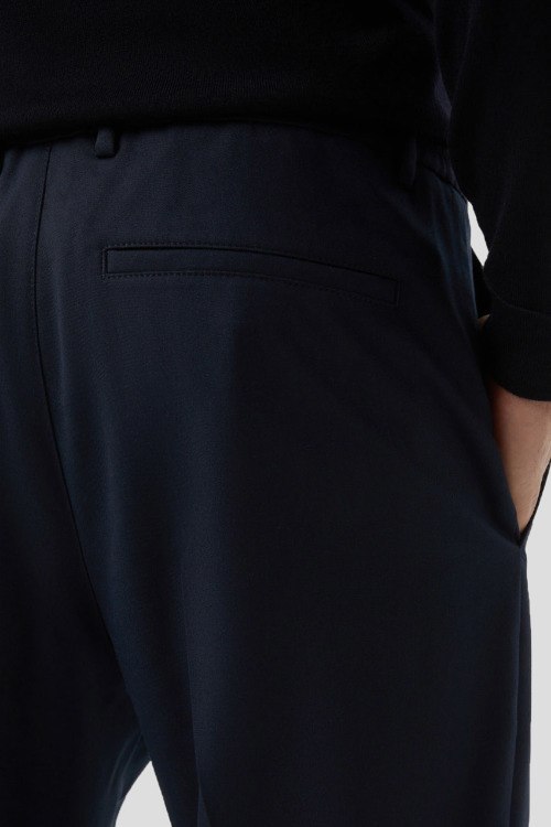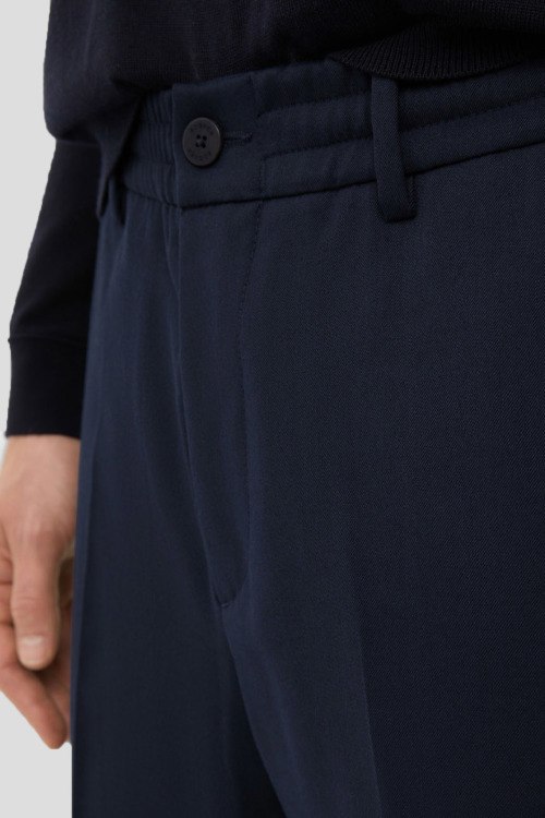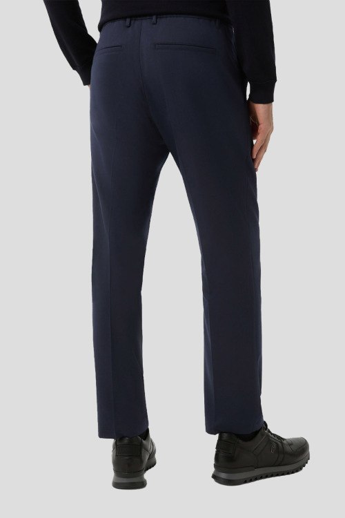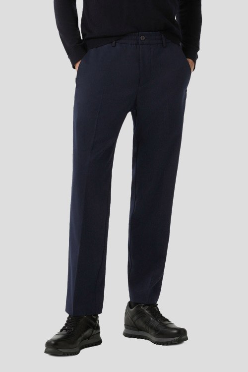 Детали: Мужские темно-синие брюки из шерсти и вискозы Marcus от Bogner (Богнер). Дизайн со стрелками, боковые и задние карманы, в поясе с петлями для ремня и на резинке, прямой крой, полная длина