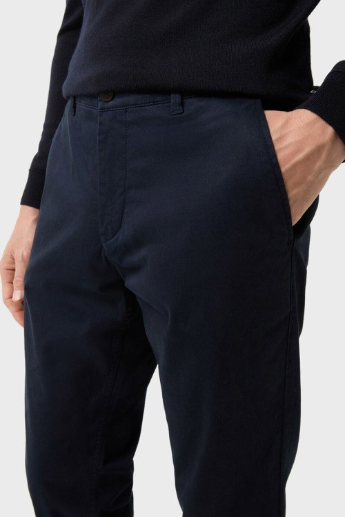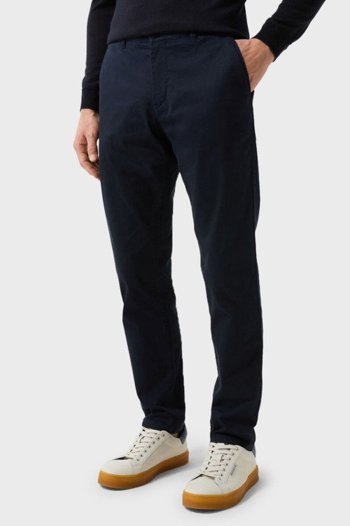 Детали: Мужские темно-синие хлопковые брюки Nik-G от Bogner (Богнер). Боковые и задние карманы, пояс с петлями для ремня, зауженный фасон, полная длина