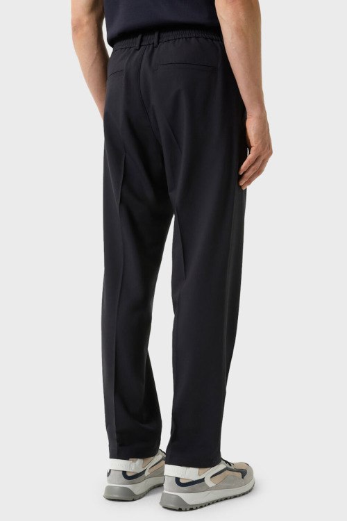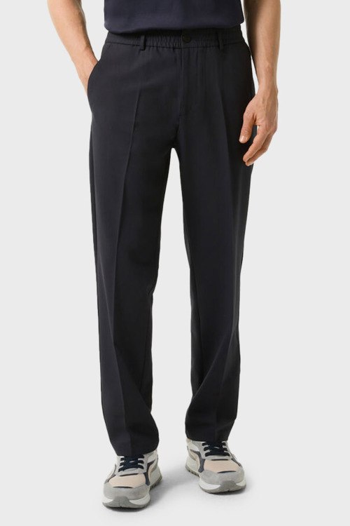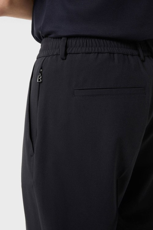 Детали: Мужские темно-синие брюки из шерсти и вискозы Marcus от Bogner (Богнер). Дизайн со стрелками, в поясе на резинке и с петлями для ремня, боковые и задние карманы, полная длина