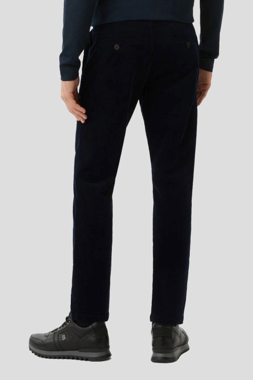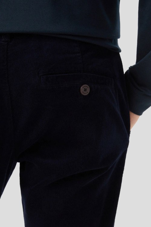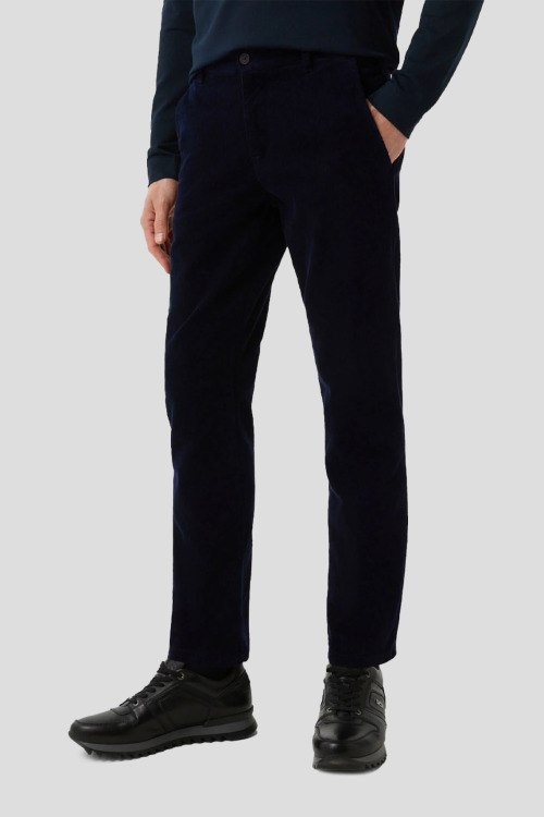 Детали: Мужские темно-синие вельветовые брюки Riley от Bogner (Богнер). Боковые и задние карманы, пояс с петлями для ремня, прямой крой, полная длина