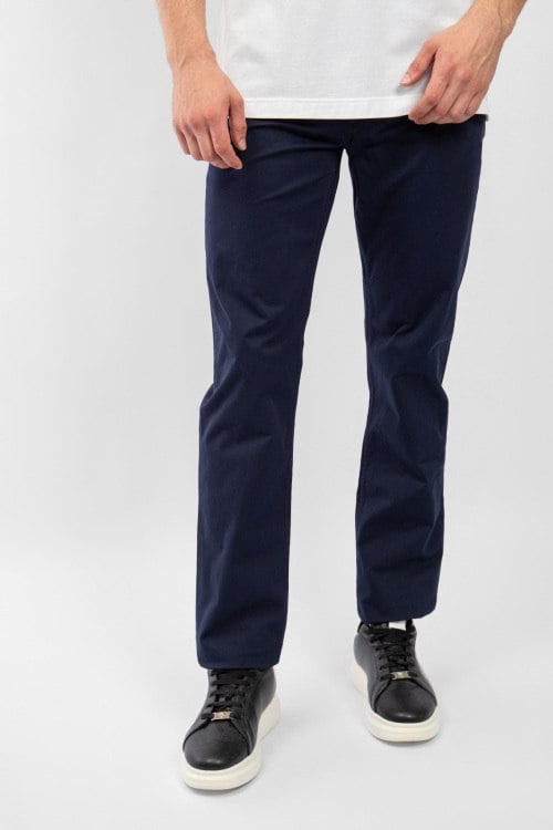 Детали: Мужские темно-синие хлопковые брюки от Gant (Гант). Пяти-карманная модель, пояс с петлями для ремня, прямой крой, полная длина