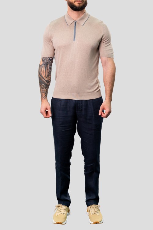 Детали: Мужские темно-синие льняные брюки от Gran Sasso (Гран Сассо). Дизайн со стрелками, боковые и задние карманы, пояс на завязках и с петлями для ремня, сзади пояс на резинке, полная длина