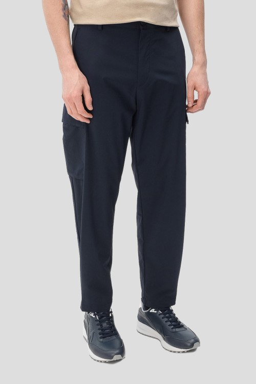 Детали: Мужские темно-синие брюки-карго Рerin от Hugo Boss (Хуго Босс). Пояс с петлями для ремня, боковые и задние карманы, накладные карманы-карго, полная длина
