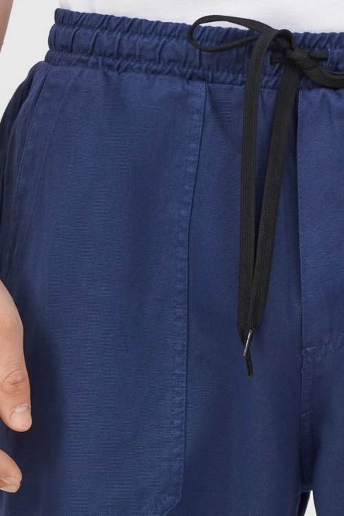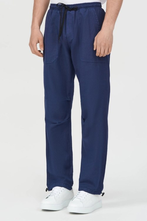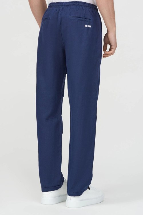 Детали: Мужские темно-синие брюки из хлопка и льна от Ice Play (Айс Плей). Эластичный пояс на завязках, боковые и задние карманы, низ на затяжках, полная длина