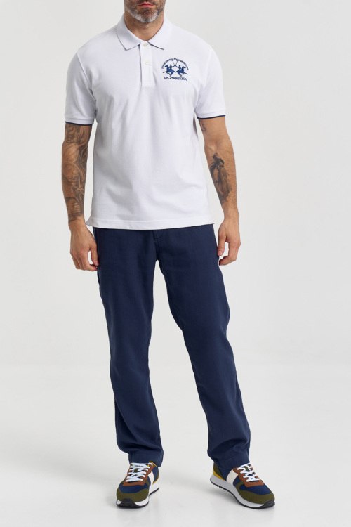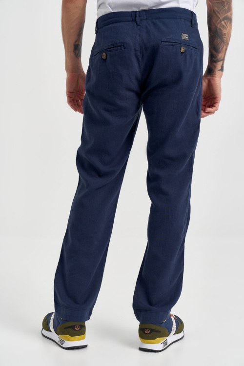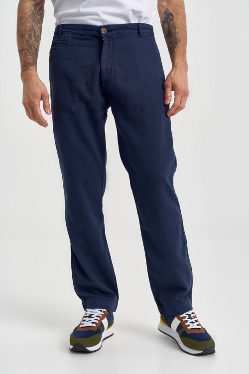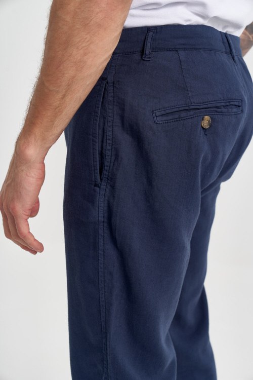 Детали: Мужские темно-синие брюки из хлопка и льна от La Martina (Ла Мартина). Боковые и задние карманы, пояс с петлями для ремня, прямой крой, полная длина. Параметры модели: 103 см - 87 см - 99 см. Рост - 182 см. Размер на фото - 32