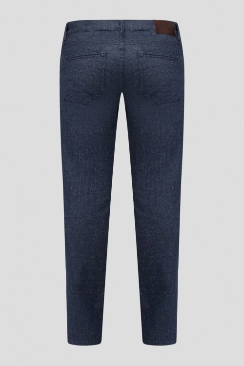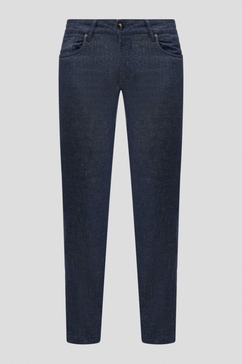 Детали: Мужские темно-синие брюки из хлопка и льна от Pal Zileri (Пал Зилери). Классическая длина, средняя посадка, застежка на молнию и пуговицу, пять карманов, петли в поясе для ремня, патч-лого. Замеры: обхват пояса: для размера 32 - 82 см, обхват бедер: для размера 32 - 100 см, длина штанины: для размера 32 - 107 см, длина по шаговому шву: для размера 32 - 83 см