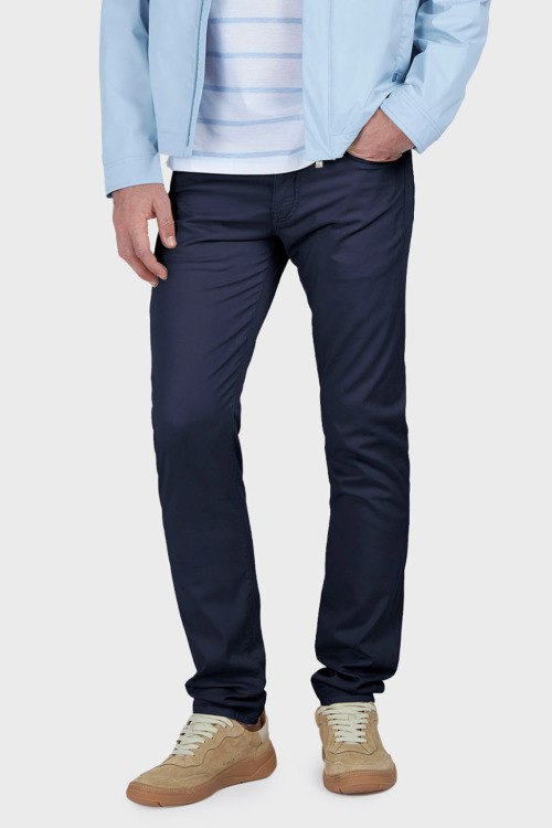 Детали: Мужские темно-синие брюки из хлопка от Paul & Shark (Пол энд Шарк). Классическая длина, зауженная модель, застежка на молнию и пуговицу, пять карманов, петли в поясе для ремня