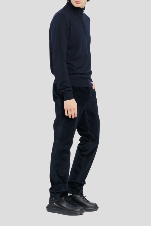 Детали: Мужские темно-синие вельветовые брюки из хлопкового микса от Sand (Санд). Классическая длина, застежка на молнию и пуговицу, четыре кармана, петли в поясе для ремня