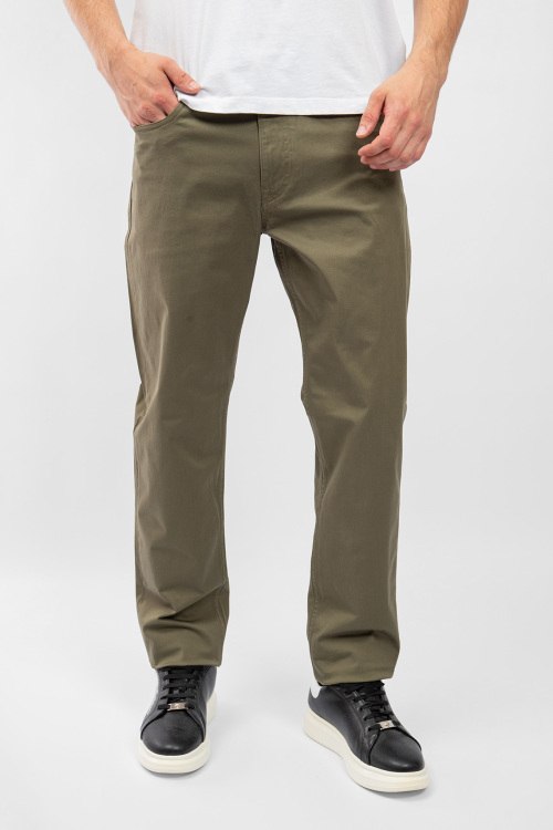 Детали: Мужские оливковые хлопковые брюки от Gant (Гант). Пяти-карманная модель, пояс с петлями для ремня, прямой крой, полная длина