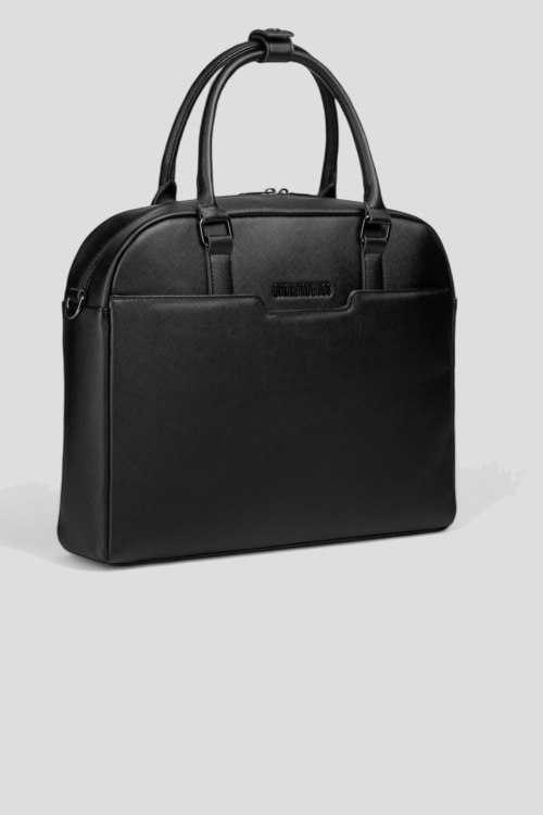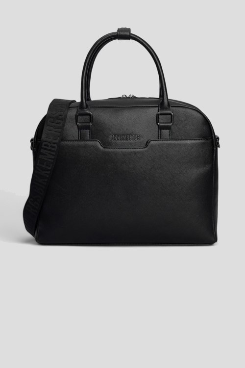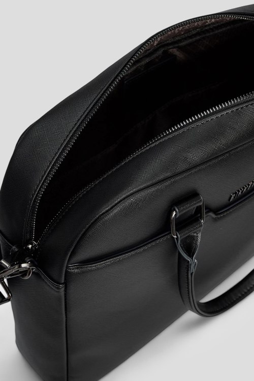 Детали: Мужская черная сумка для ноутбука из экокожи Briand от Bikkembergs (Биккембергс). Значок с логотипом, серебристая фурнитура, внешний карман, две круглые ручки, съемный плечевой ремень, застежка-молния, одно отделение. Размеры: 38 x 30 x 8 см