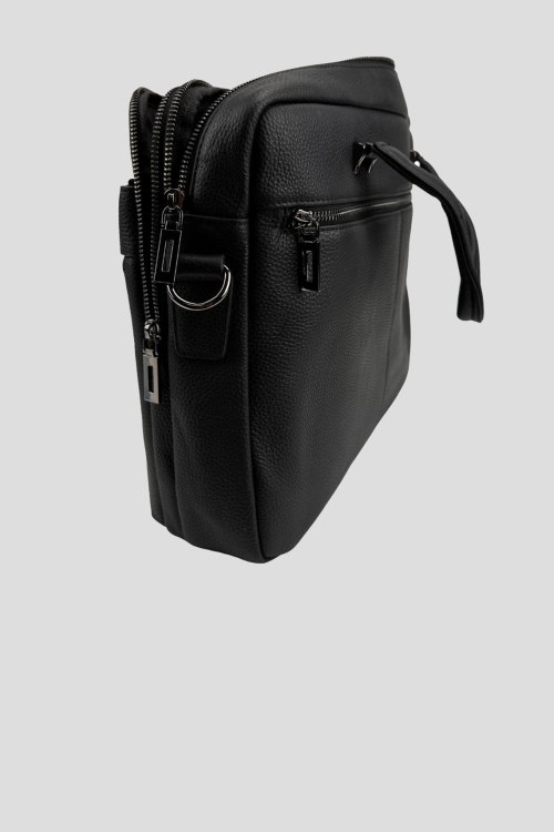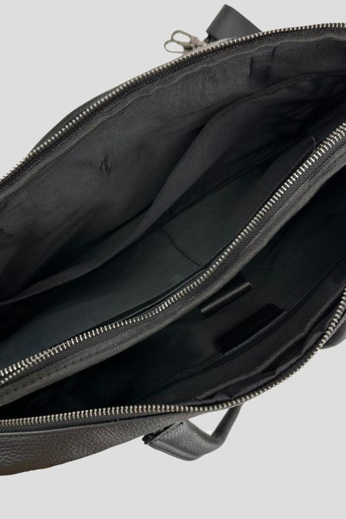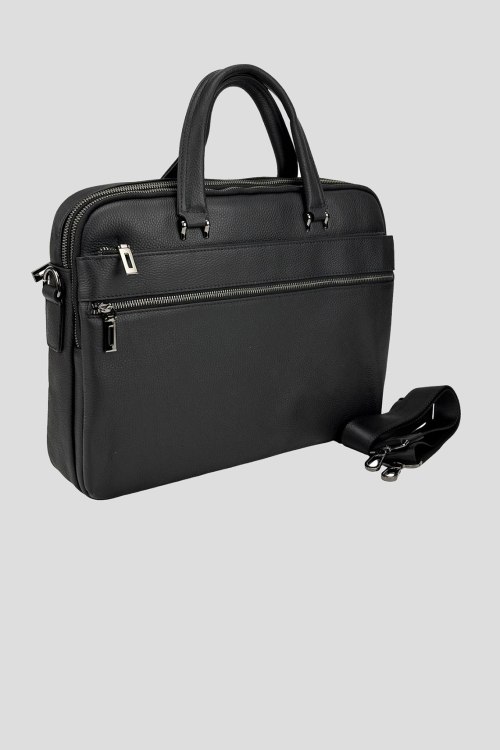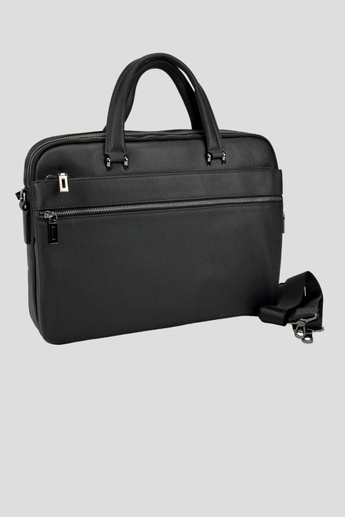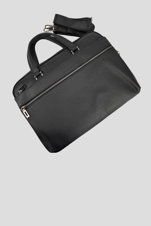 Детали: Мужская черная сумка из натуральной кожи от Tiding Bag (Тайдинг Бег). Два отделения, застежка на молнию, внутренние карманы, две верхние ручки, внешний карман на молнии, съемный регулируемый ремень. Измерения: 39 x 28 x 9 см