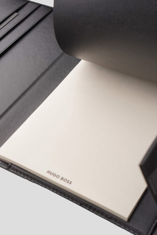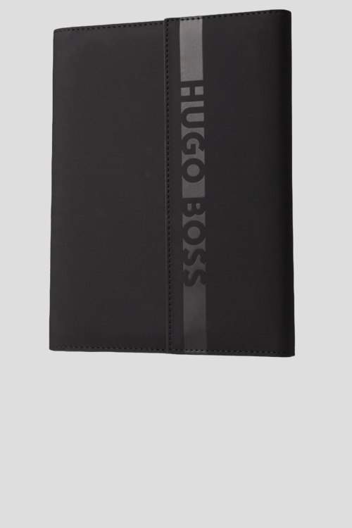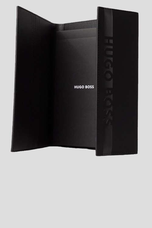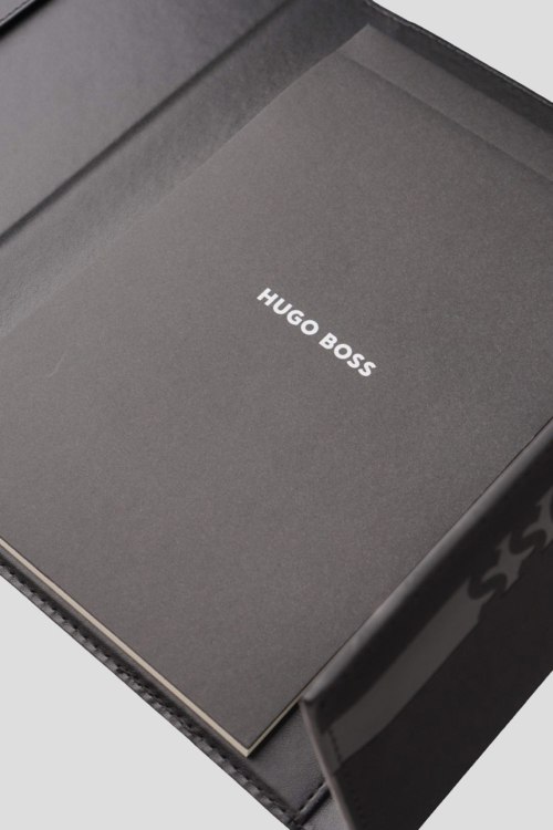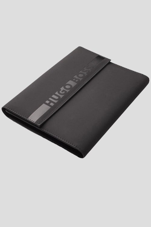 Детали: Мужская черная кожаная папка для документов от Hugo Boss (Хуго Босс). Изготовлена из натуральной кожи в классическом черном цвете, имеет удобные внутренние отделения для хранения не только документов или планшета, но и карт, визиток, ручек и других бизнес-аксессуаров. Снаружи надежно фиксируется на магнитных застежках. Размер: 23 x 17 x 2,5 см