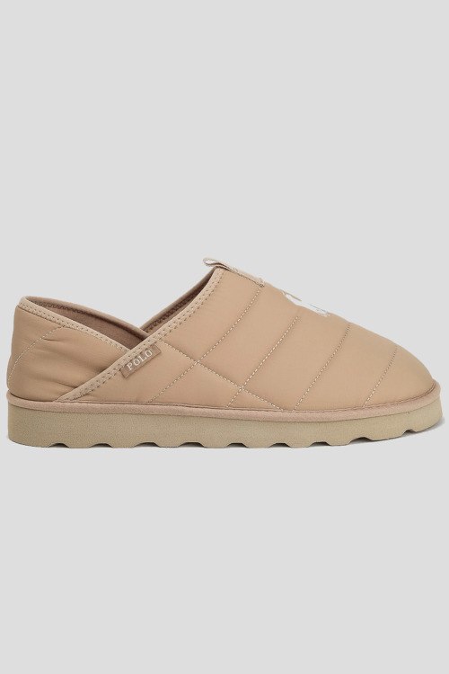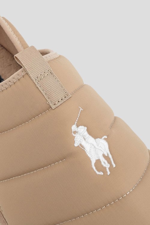 Мужские бежевые дутые слипоны от Ralph Lauren (Ральф Лорен). Стеганый дизайн, вышитый логотип, закругленный носок