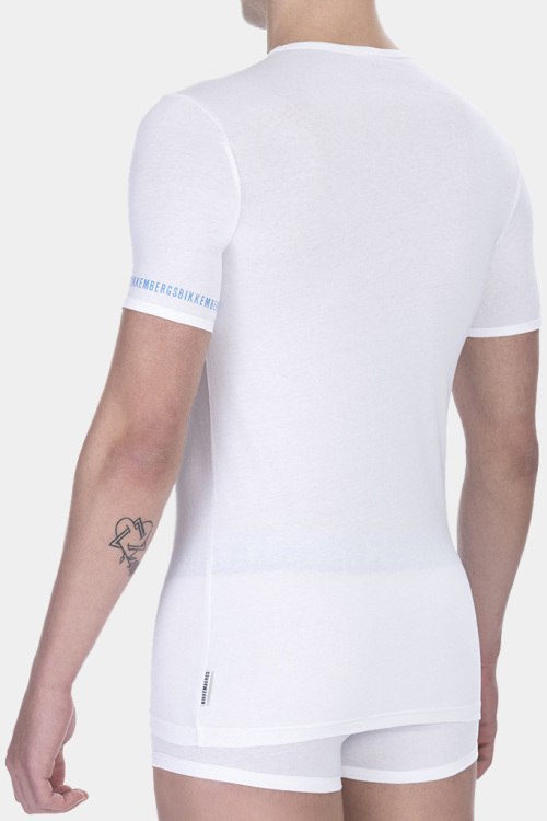 Мужской комплект белых хлопковых футболок от Bikkembergs (Биккембергс). Круглый вырез горловины, короткий рукав с логотипом, классическая длина. В комплекте 2 шт