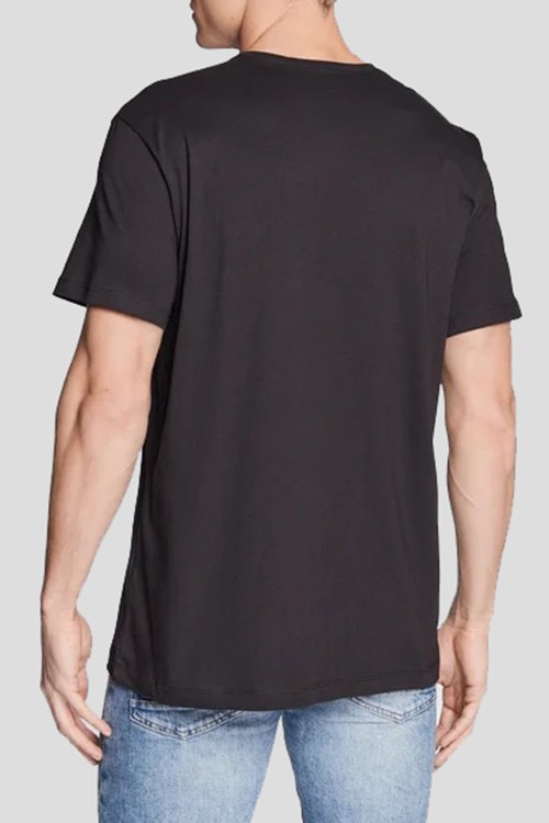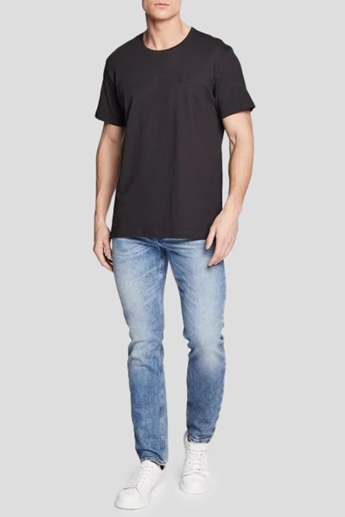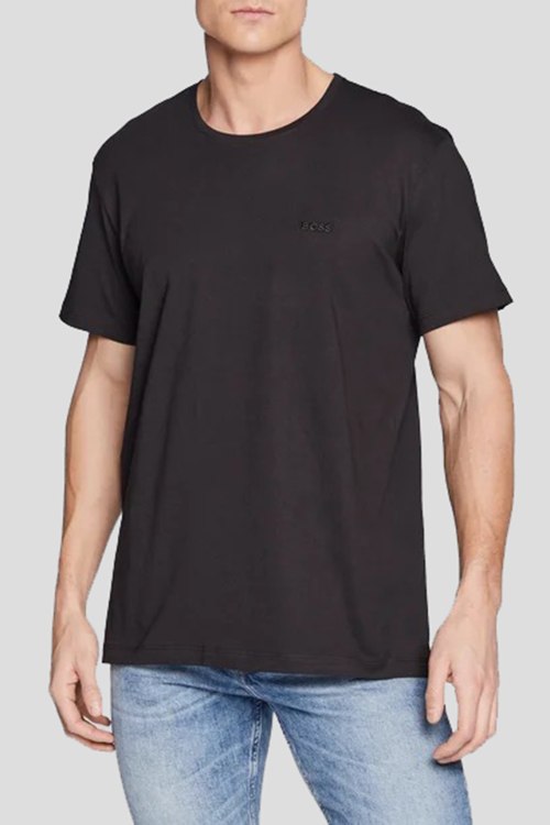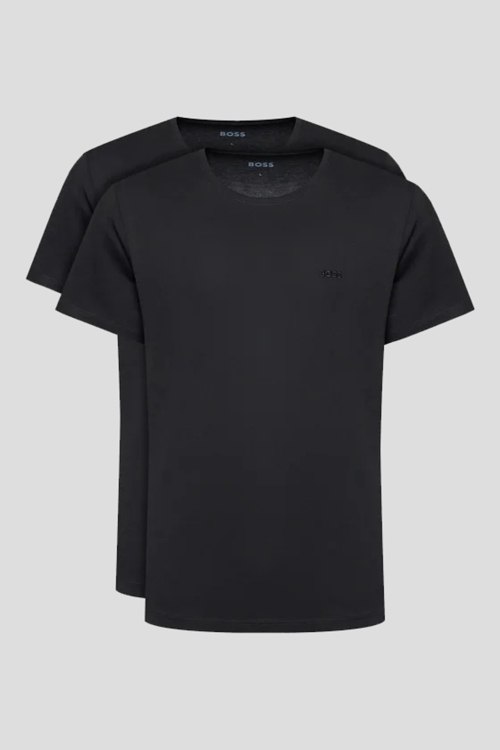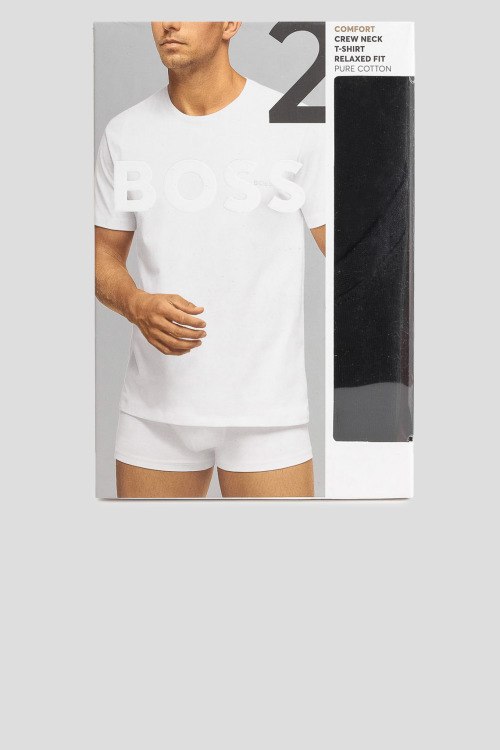 Мужской комплект черных хлопковых футболка Comfort от Hugo Boss (Хуго Босс). Логотип на груди, круглый вырез горловины, короткий рукав, классическая длина. В комплекте 2 шт