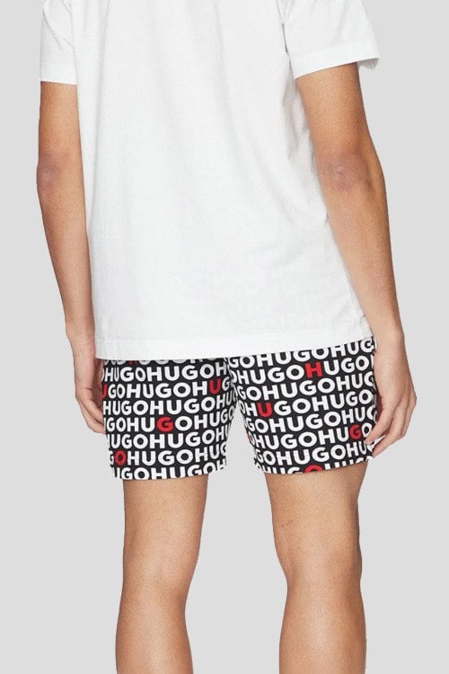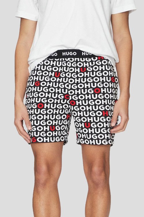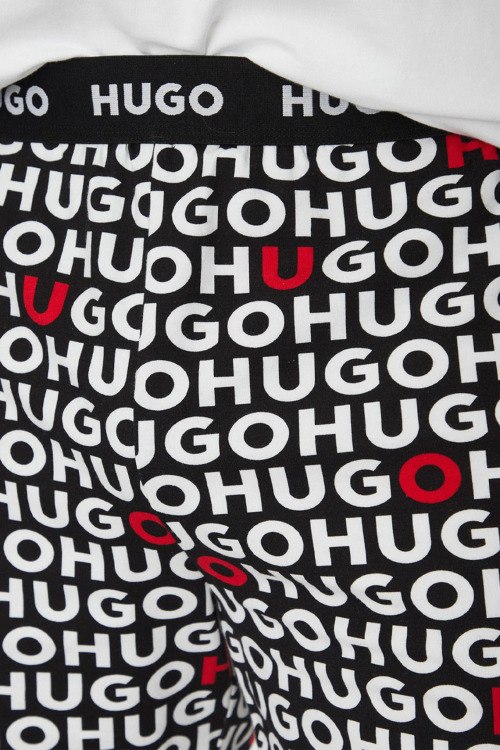 Детали: Мужская черно-белая хлопковая пижама Tortuga от Hugo Boss (Хуго Босс). Футболка: логотип на груди, круглый вырез горловины, короткий рукав, классическая длина. Шорты: принт с логотипом по всей поверхности, эластичный пояс, длина до колен