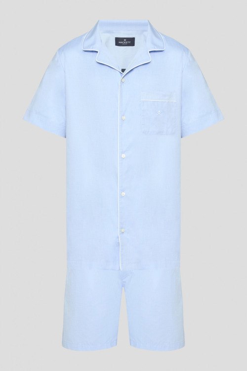Детали: Мужская голубая пижама из хлопка от Hackett (Хаккетт). Рубашка на пуговицах, короткие рукава, нагрудный карман, вышитый логотип, шорты с эластичной резинкой на поясе, патч-лого, два кармана. Замеры: рубашка: Длина рукава: для размера М - 25 см, обхват груди: для размера М - 112 см, обхват талии: для размера М - 112 см, длина изделия по среднему шву спинки от горловины: для размера М - 76 см. Шорты: обхват пояса: для размера М - 74 см, обхват бедер: для размера М - 104 см, длина штанины: для размера М - 49 см, длина по шаговому шву: для размера М - 20 см