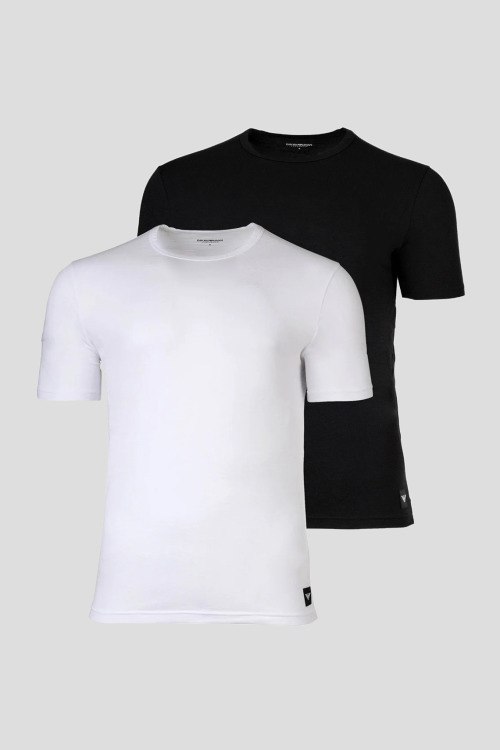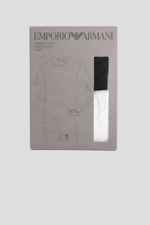Детали: Мужской набор хлопковых футболок от Emporio Armani (Эмпорио Армани). Нашивка с логотипом, круглый вырез горловины, короткий рукав, классическая длина. В наборе два цвета: черный и белый