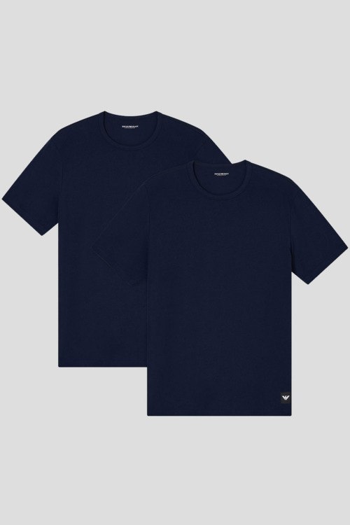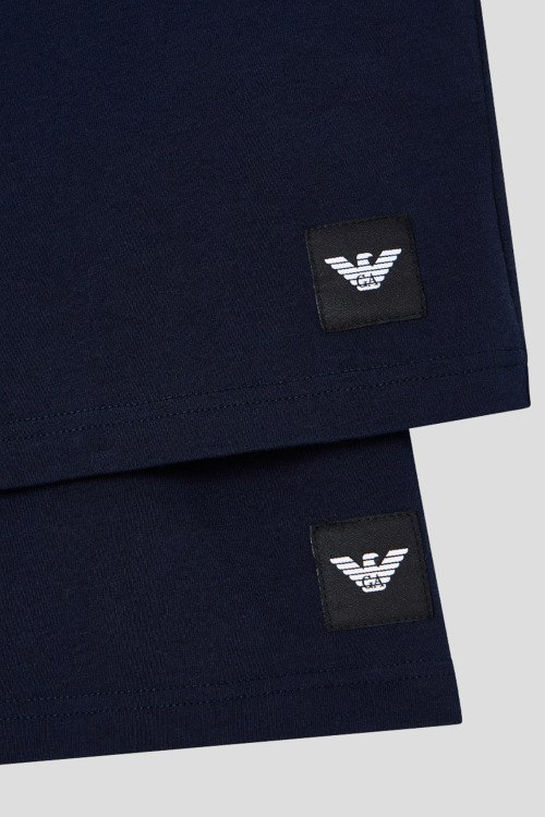Детали: Мужской комплект темно-синих хлопковых футболок от Emporio Armani (Эмпорио Армани). Нашивка с логотипом, круглый вырез горловины, короткий рукав, классическая длина. В комплекте 2 шт